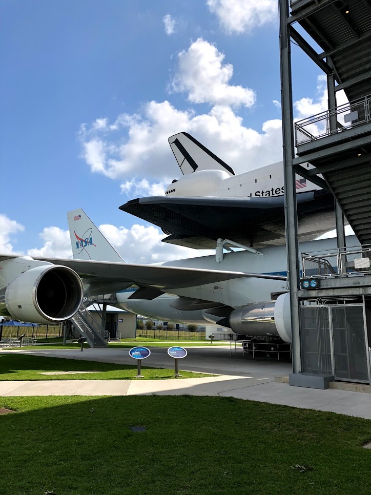 We then went out to Independence Plaza which is where you get to walk inside a shuttle carrier aircraft and a replica space shuttle. It is really amazing that they have set up the exhibit so you can actually walk around inside a real aircraft and see things for yourself.