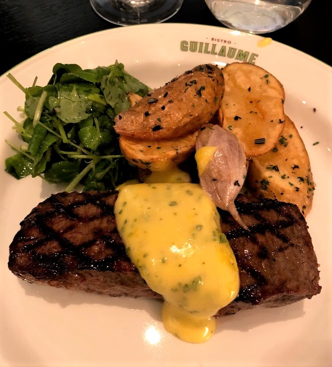 We then had our dinner reservation at Bistro Guillame which is a very fancy french restaurant. Our seat was a semi-circle lounge which was nice and comfy. We ordered some more drinks and were served some delicious bread while we looked over the menu. It is a rather small menu but everything looked like it would be delicious. Two of us went for the sirloin and my other friend got the crab linguini. We all thought our meals were amazing and very filling.