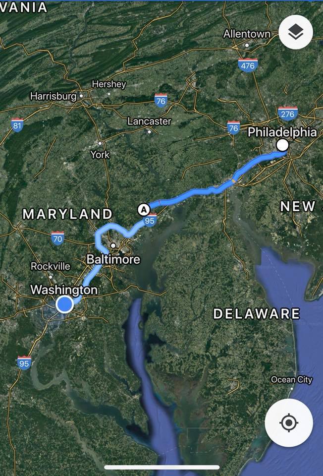 The Drive took about 4 hours in total with the stops and the traffic on arrival in DC was verrry slow. We were gridlocked for a while on New York Ave crossing over the train line.