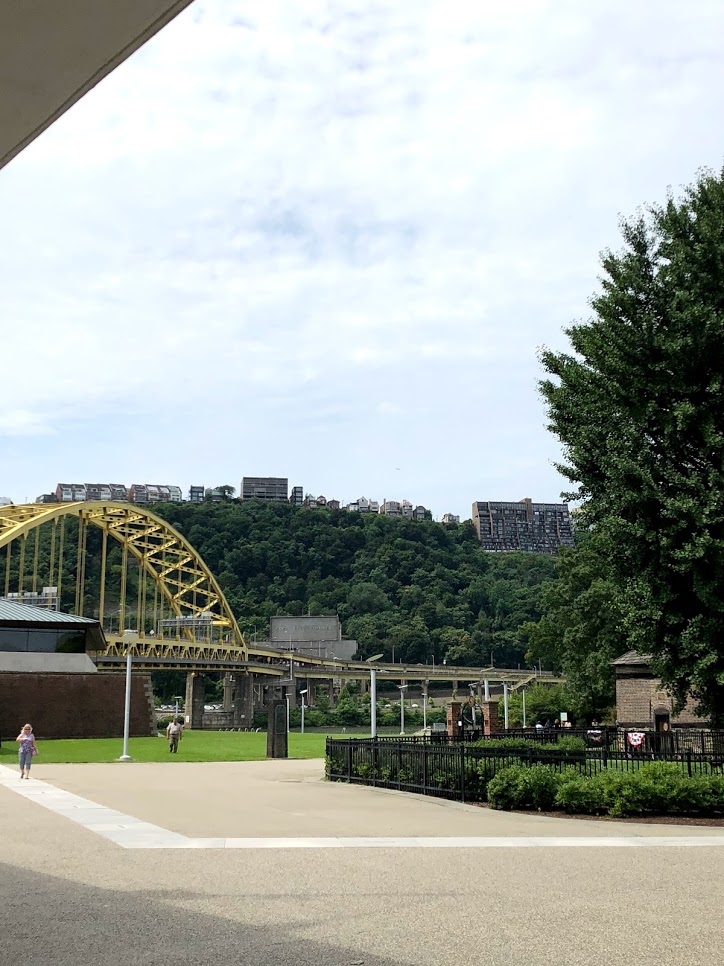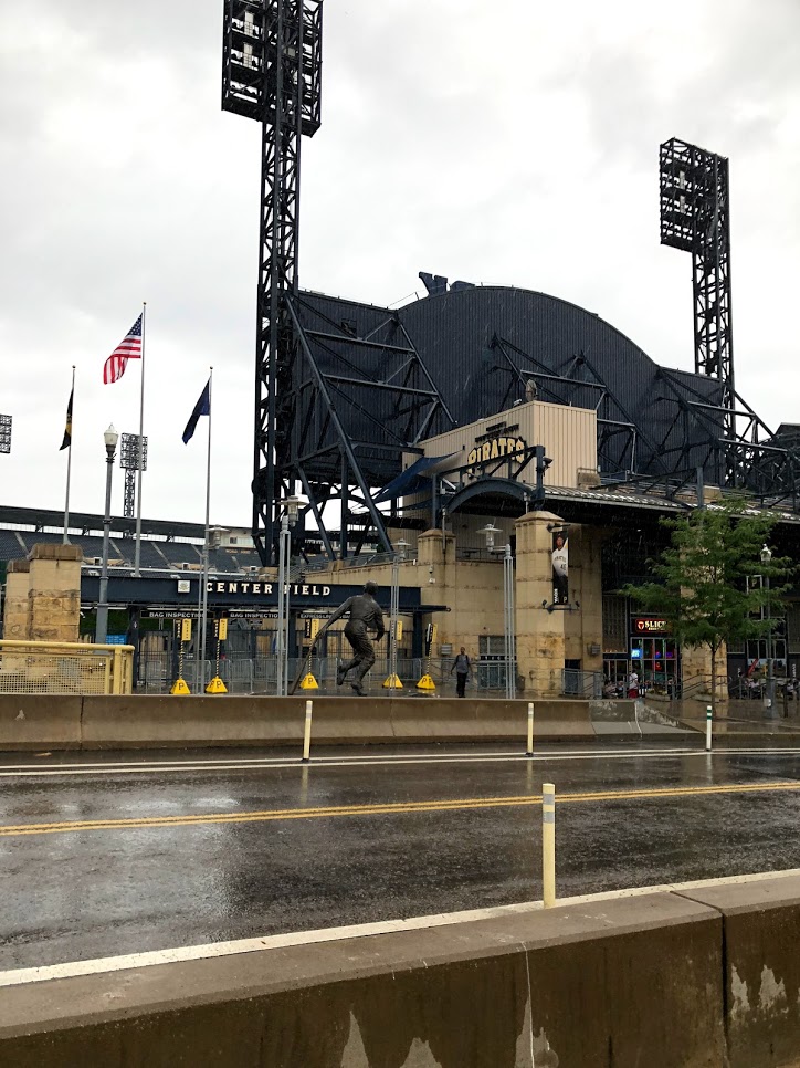 After lunch we had allocated time to walk around downtown, however we couldn’t really find anything to do. We went over to Market Square and then up to the David L. Lawrence Convention Centre. I was trying to use my phone to google some places to visit but I couldn’t get any reception. We walked along the river and then it started to rain. We decided that since we were close to PNC park we would just cross the Robert Clemente Bridge and wait for the ballgame to start.