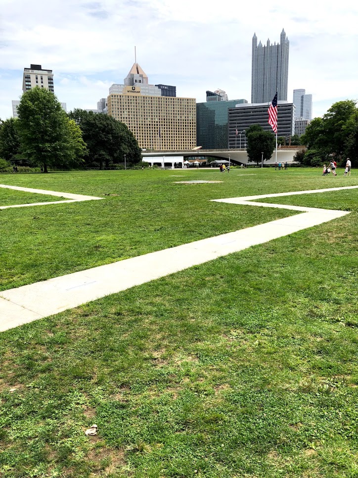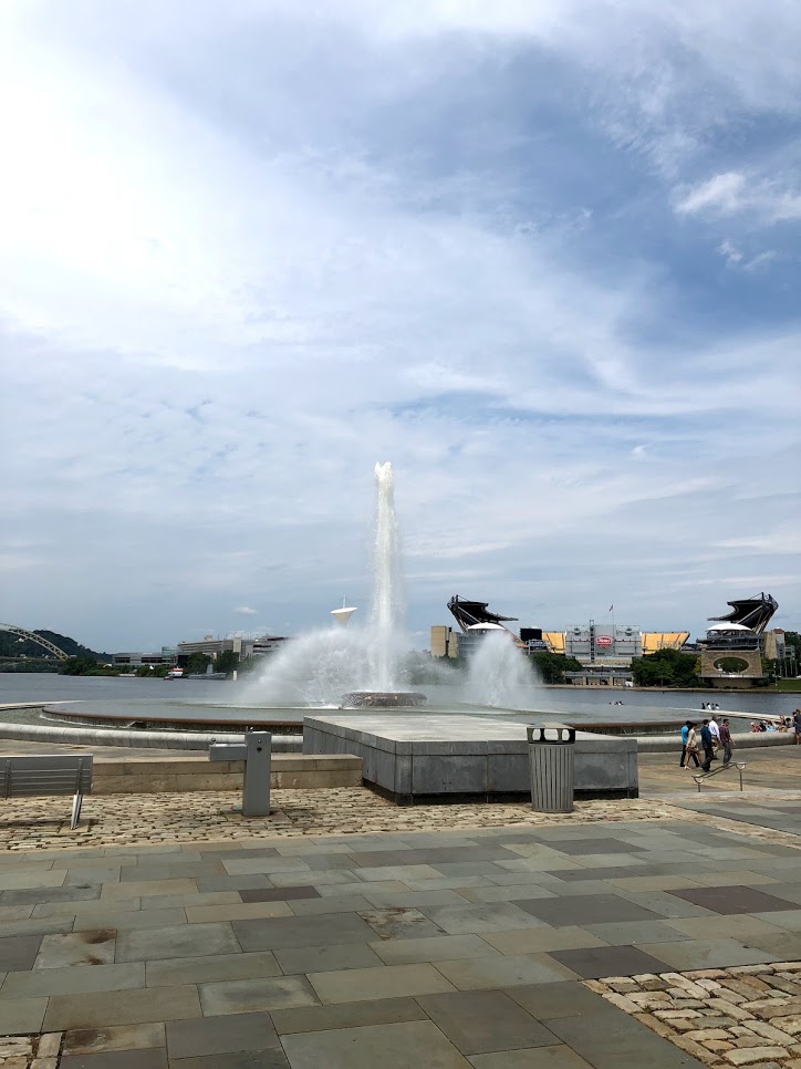 We then walked down to the Point State Park Fountain, which is quite magestic overseeing the point where the three rivers meet. Next to it is the Fort Duquesne, which are bricks mapping the outline of a historic french fort.