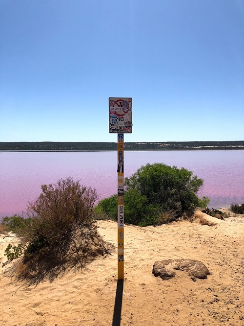 On our way out of Kalbarri we stopped at the very Instagrammable pink lake in Port Gregory. The lake is pink due to algae which create the pinky-red pigment beta-carotene. The lake is fed by ocean water causing it to also have a very high salt content. During the summer months there are large sections where the lake becomes salt-flats.
