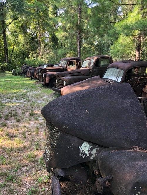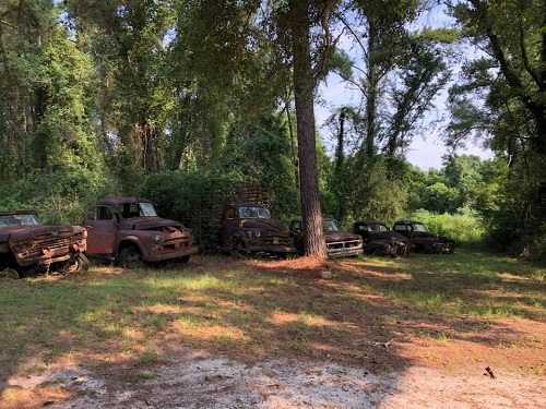 On the drive out of Tallahassee there is a ‘blink and you’ll miss it’ stop on the side of the road, which we genuinely did miss the first time we drove past! After a u-turn we made it back to see this unusual collection of rusted out fords in the overgrown bush land. The exact location is 4244-4340 FL-61 Crawfordville and there is plenty of parking once you pull off the road, with the cars only a short walk away.