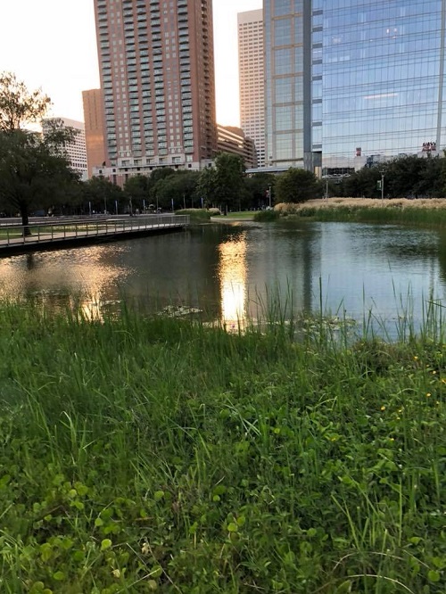 Thankfully we made it to Houston in one piece and with some daylight to spare, so after checking in to the Hampton Inn we explored the beautiful Discovery Green and had dinner in the lobby of a nearby hotel.