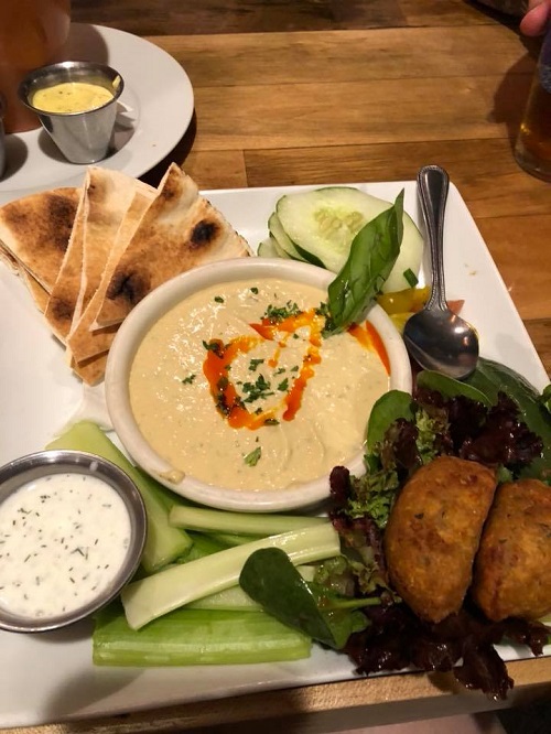 Speaking of tasters, I thought Kansas had some of the best food on the trip! Wichita definitely knows how to do a brewery, and I would consider it up there with Denver and Louisville in terms of easy relaxing bars to eat at. On our first night we went to River City Brewing Company and had a flight of beers including a delicious honey rye, and we shared a pizza before going to Public where I tried a pineapple cider and got a hummus and veggie platter.