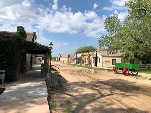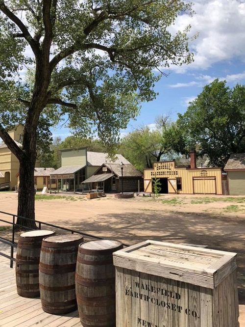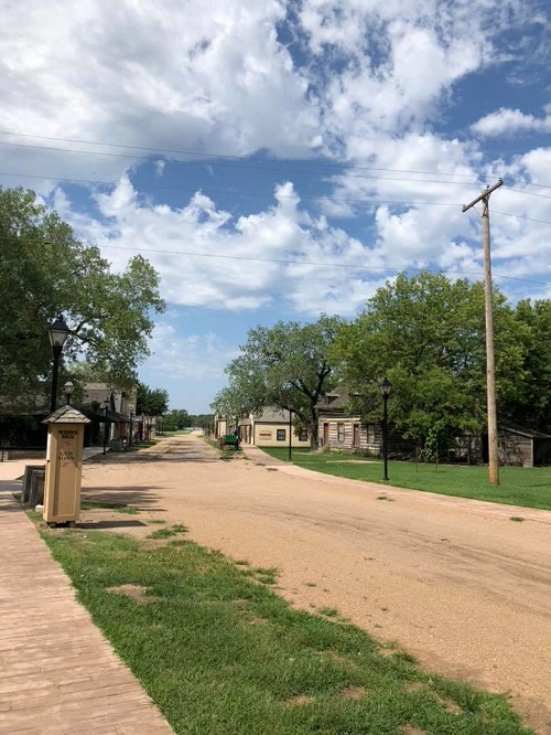 We then drove over to the Keeper of the Plains statue which overlooks the Arkansas and Little Arkansas rivers, which I thought was very impressive. We then went to the Old Cowtown Museum which is a huge full size outdoor replica of an old Kansas town. There was a character actor running the newspaper store who let us have a go on the printing press. We also saw a bunny with a white fluffy tail run into the bushes. It reminded me of the old Pioneer Village that we used to have in Perth.