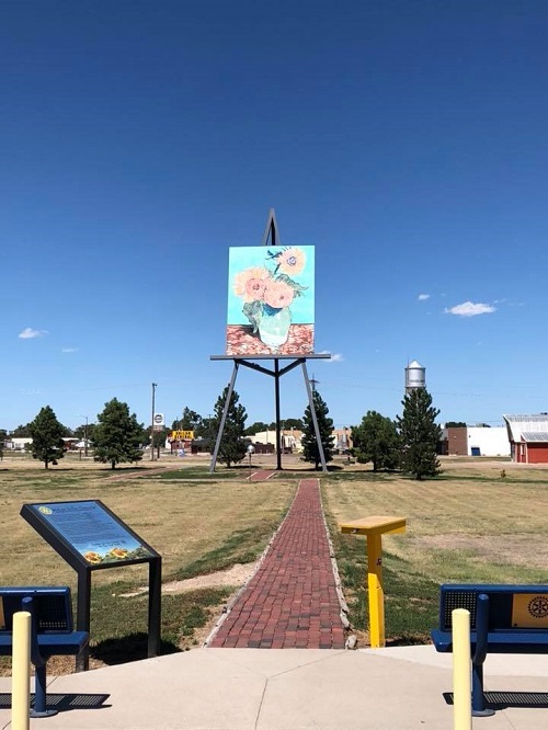 For our final morning in Wichita we got breakfast again at Egg Cetera as it was so yummy the day before, and then packed our bags to leave Old Town. The drive straight to Denver would be around 8 hours so we decided to take our time and stop overnight in Burlington, Colorado. The drive was mainly straight long roads through the Kansas prairies, with a stop for lunch in Hays as well as a stop in Goodland to see the huge sunflower painting. We also saw another wind turbine blade being trucked to it’s destination. There were SO many bugs squishing onto our windscreen which is something we hadn’t come across yet on our trip, our poor hire car was filthy!