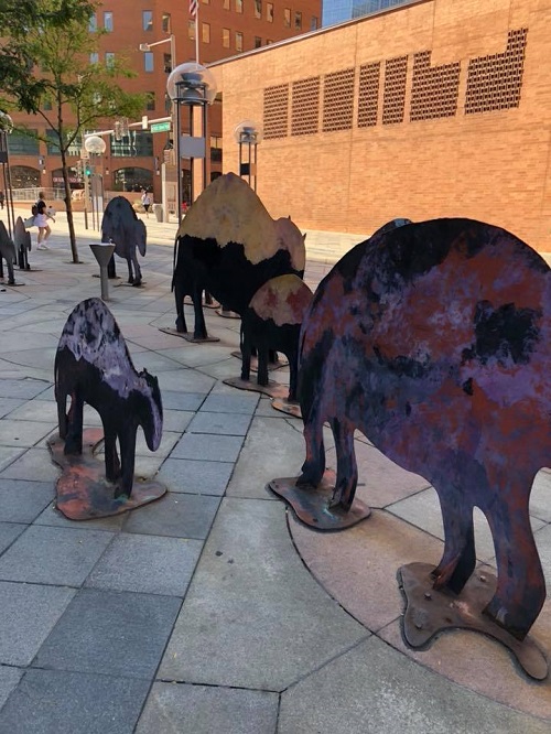 After settling into our little apartment the day before, we were ready to go exploring the wonderful city of Denver. We made a breakfast of bagels in our kitchenette to fuel ourselves up and then we strolled around the streets of Denver looking in shops and alleyways. There was quite a bit of street art and colourful murals on the sides of buildings, and we even found a cute art installation of cat statues.